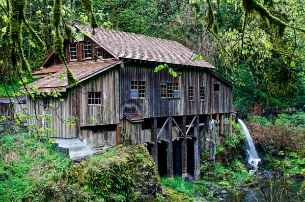 in SW Washington State. Built in 1876. Historic landmark was/is the only water powered grain mill in Washington. Still operational on a small basis to demonstrate how grain was turned into flour in the day. Peaceful setting.