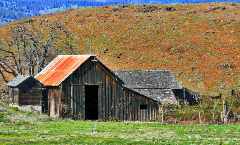 old structures above Mosier, Oregon on the original Old Columbia River Hwy, before I-84 was constructed below, in the Gorge.