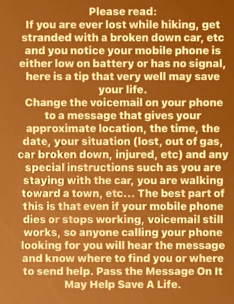 Life Cell Phone Greeting: Safety, Survival, Search & Rescue Tip: Date: June 20, 2025Author: SwittersB & Exploring 0 Comments Please Share: Share on Pinterest (Opens in new window) Pinterest Like Loading... Related